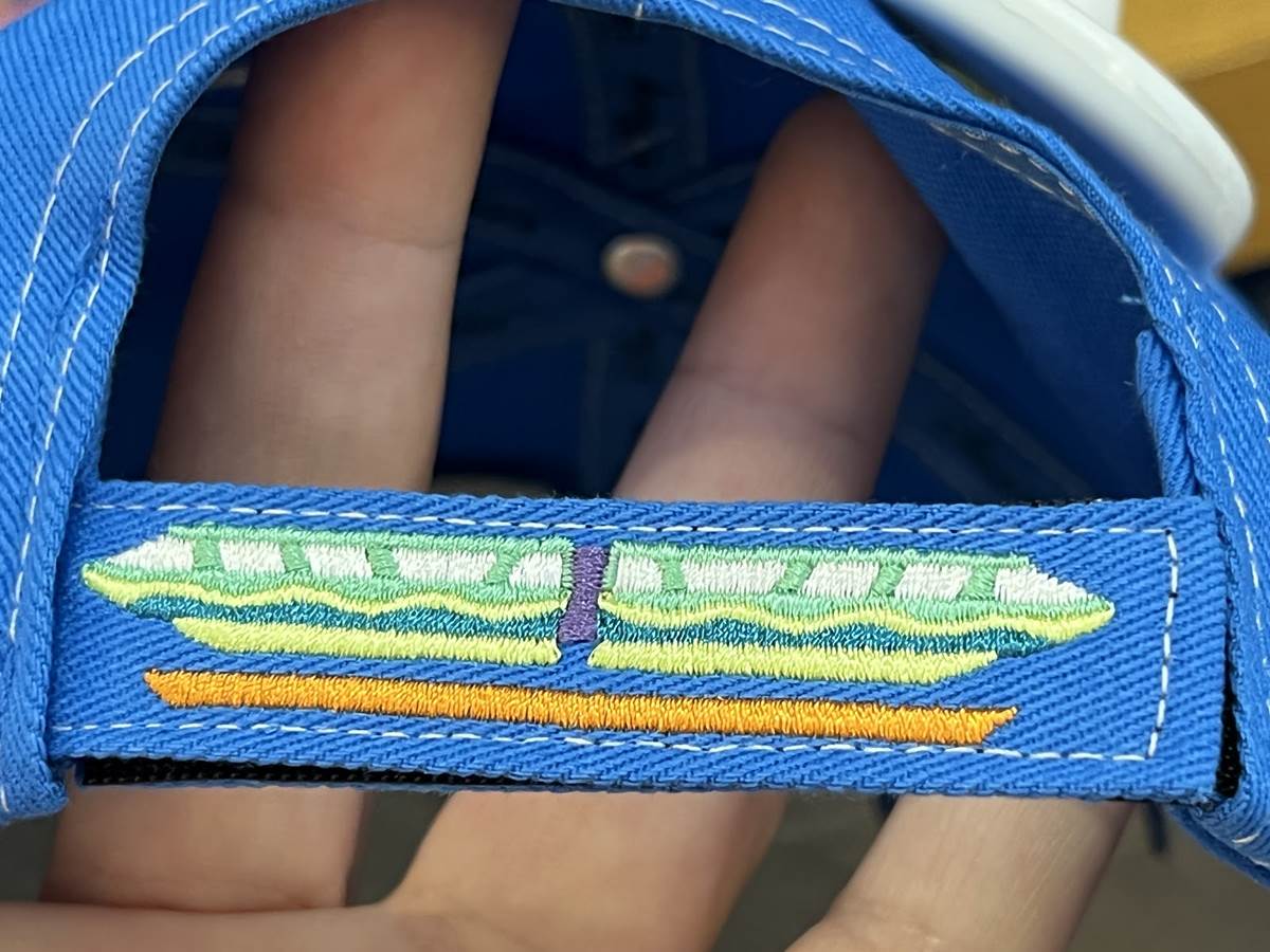 The style also is kind of carried over but in a brighter way in a baseball cap that sells for $29.99. The adjustable strap on the back features a monorail with the same style.