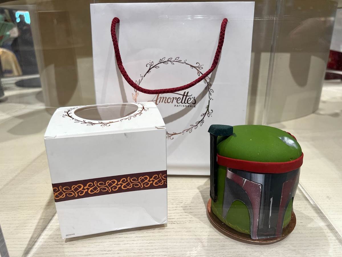 Amorette’s Patisserie at Disney Springs is known for offering specialty cakes inspired by the latest Disney shows and movies. Currently available is a special Boba Fett helmet-shaped cake, celebrating The Book of Boba Fett on Disney+.