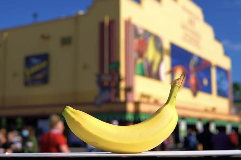 - A short video showing off an onion (a key icon in the Shrek films and the attraction) is literally replaced by a banana, widely associated (in terms of Universal Parks) with Despicable Me and the Minions.