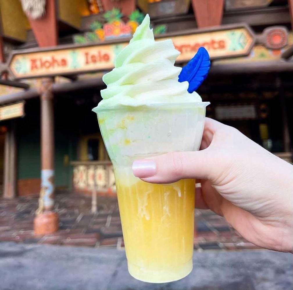 Aloha Isle is home of the next treat on our list, the Crooning Flower Float, Lime and Vanilla soft-serve swirl over pineapple juice served with a blue chocolate feather for $7.49!