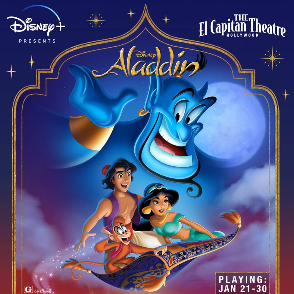 - You can get your tickets for a showing of Disney’s Aladdin at the El Capitan Theatre here.