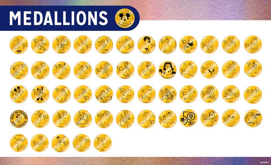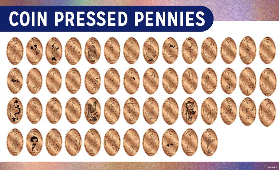- The Disney Parks Blog shared a photo of all of the 50th Anniversary pressed pennies you can find around the Resort, which you can see above.