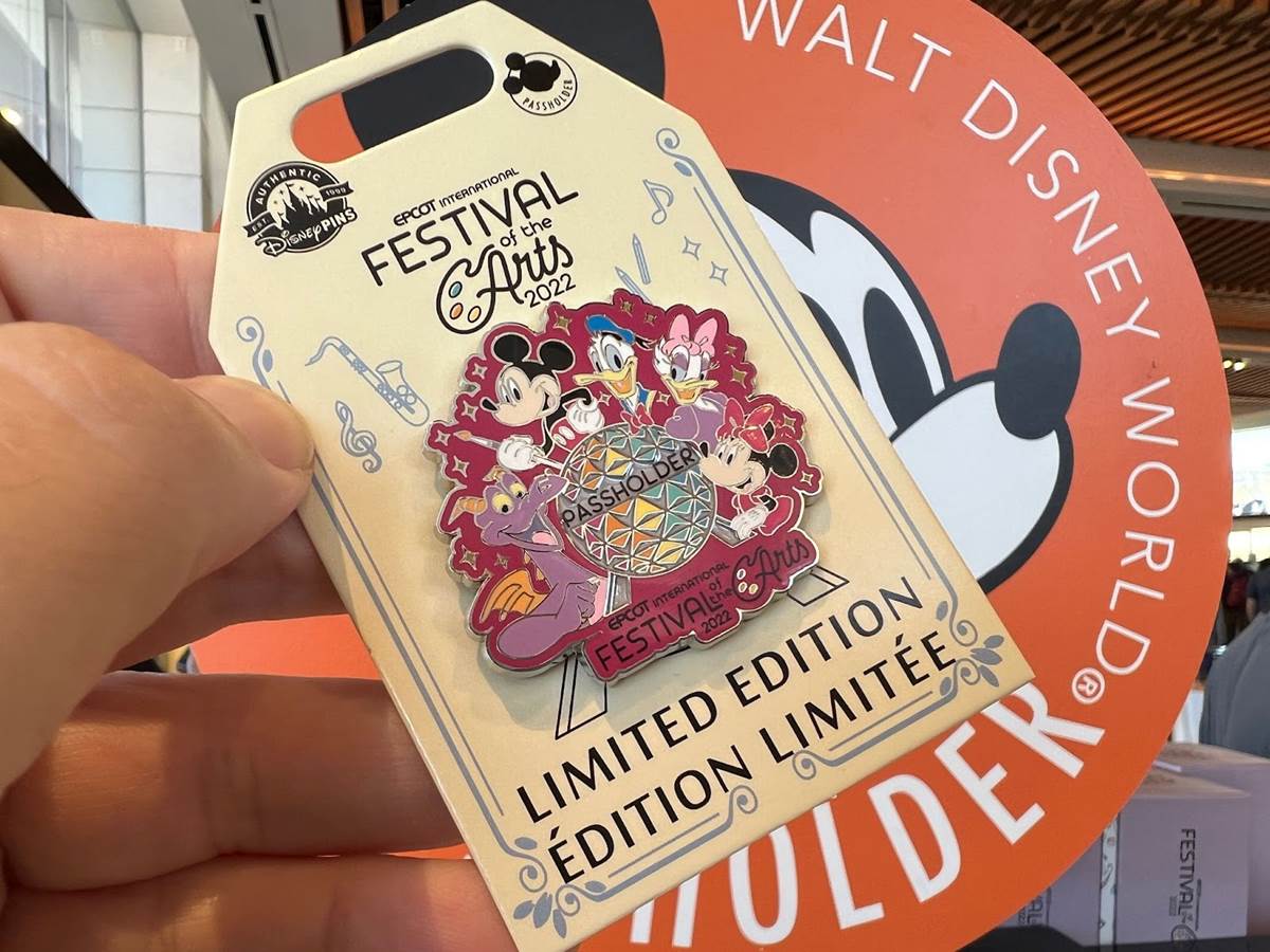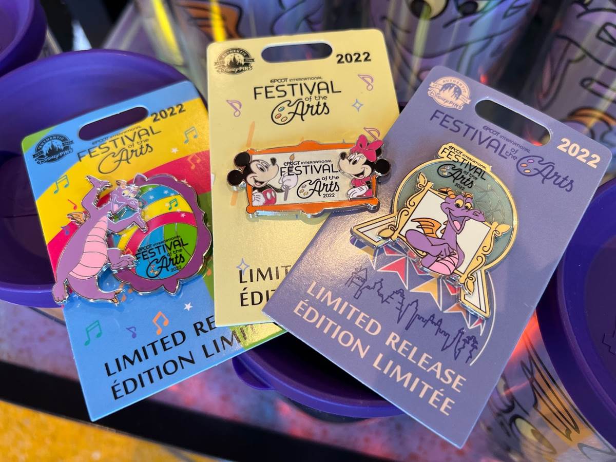 The two limited release Figment pins feature our favorite purple dragon, and retail for $17.99 each. The EPCOT International Festival of the Arts logo with Mickey and Minnie is a limited edition of 3,000 and retails for $19.99