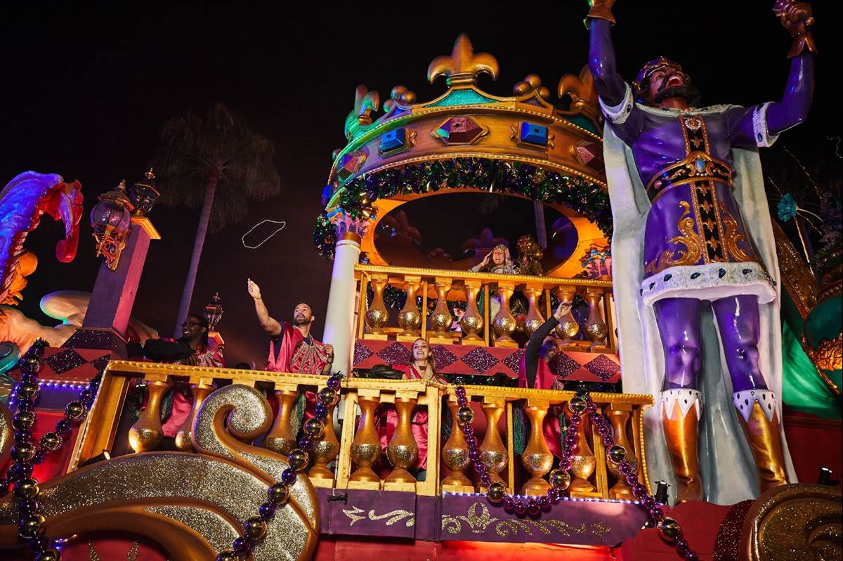 - This year’s original parade theme, “Planet Mardi Gras,” comes to life in six incredibly-detailed floats that fuse Mardi Gras flare with cosmic-inspired elements like comets, rockets, martians and more – inviting guests to catch beads by the handful. These new floats will join Universal’s traditional lineup of New Orleans-inspired floats – such as the iconic Jester and nearly 50-foot long King Gator – and wind through the streets of Universal Studios Florida on select dates, accompanied by high-energy music and dozens of performers donning illuminating costumes that bring the party to “light” in a whole new way.