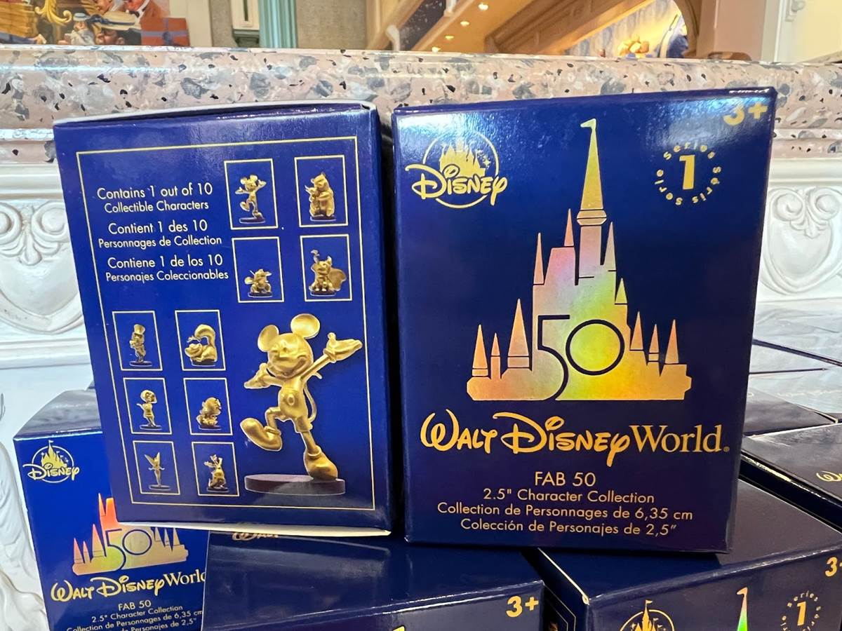 The blind packs contain one mystery golden miniature figure inspired by the statues scattered across the parks for the 50th Anniversary of Walt Disney World.