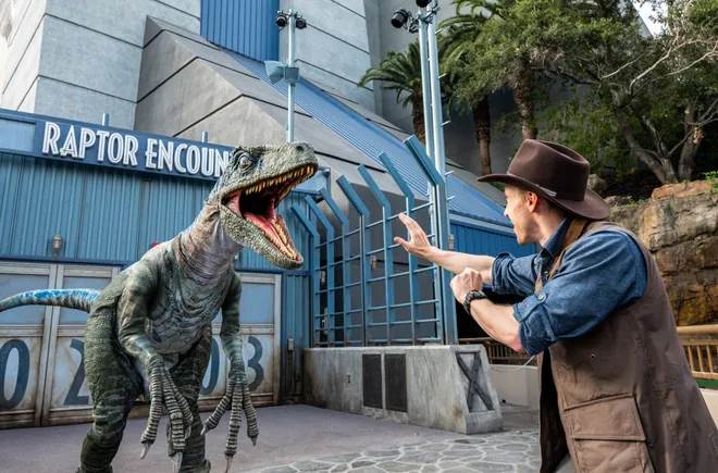 - The trio were unexpectedly surprised by a raptor at the Raptor Encounter next to Jurassic World: The Ride.