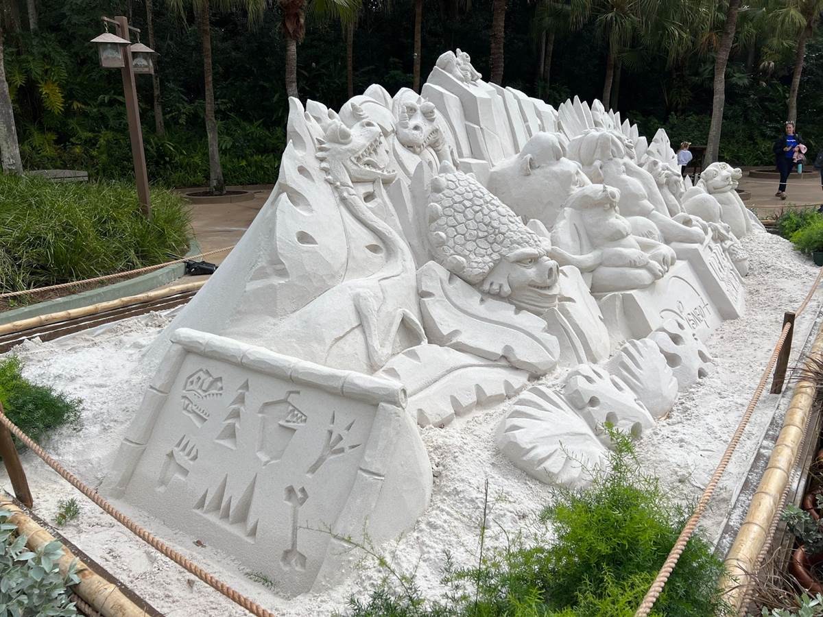 Past sand sculptures at Disney’s Animal Kingdom have included Secrets of the Whales and Raya and the Last Dragon, among others.