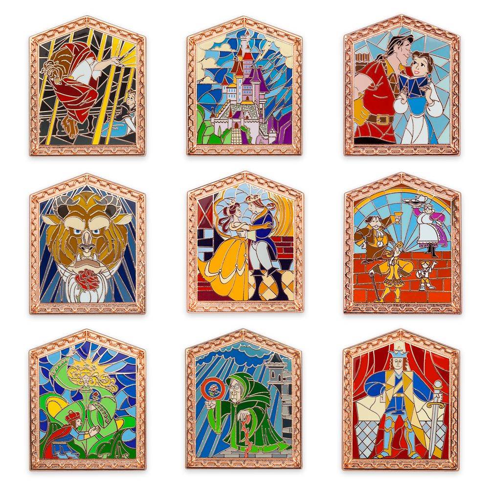 Beauty and the Beast delivers a 2-Piece Mystery Pack of pins showing important scenes from the movie that are shaped in “Windows of Love.” There are a total of 9 pins featuring characters like Belle, Beast, Gaston, the enchantress and more.