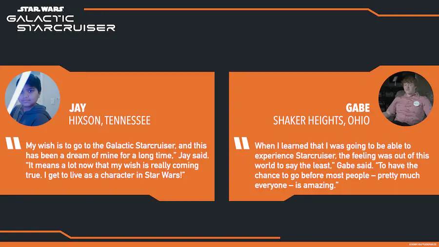 Disney Parks and Resorts Chairman, Josh D’Amaro, shared that children visiting through Make-A-Wish and other wish-granting organizations would be among the first to board Star Wars: Galactic Starcruiser!