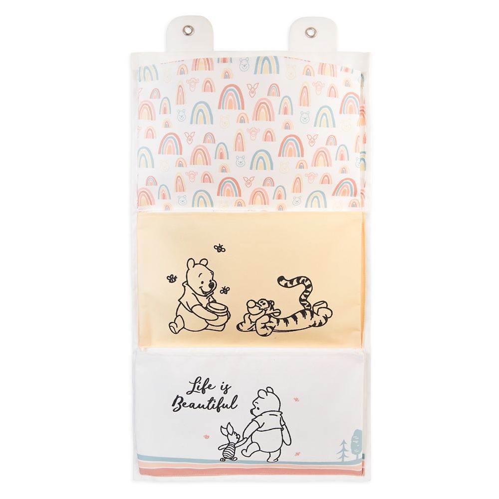 - The collection is decorated in spring colors including soft yellow, pink, red, orange and blue all complimented with Winnie the Pooh, bumble bees, and other character imagery.