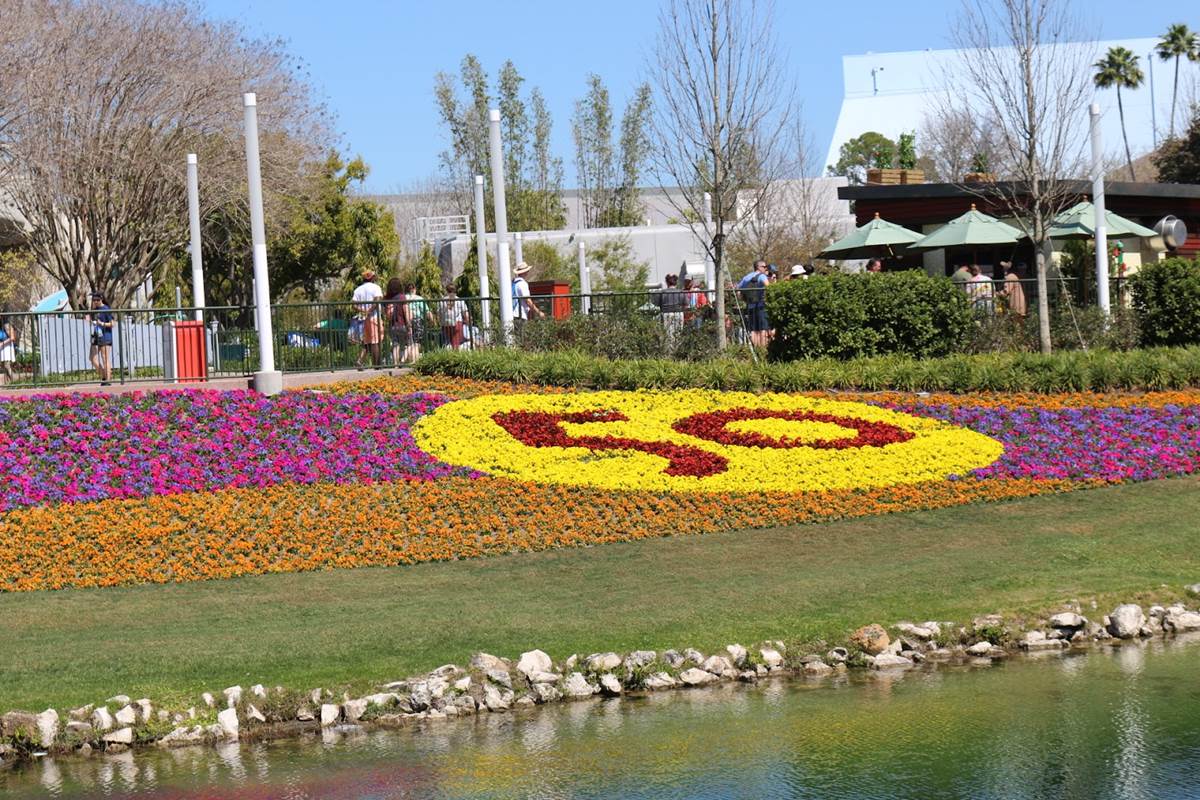 The rest of the former Future World seems to have a little less going on than in year’s past, at least in the way of topiaries. You do have the Fab 5 (minus Goofy) featured in a display directly in front of the construction in the center of the park, as well as a second 50th anniversary floral mural.