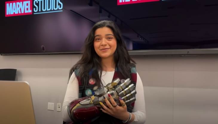 - Vellani, who plays Kamala Khan in the upcoming series, watches the new Ms. Marvel trailer while wearing her own Infinity Gauntlet.