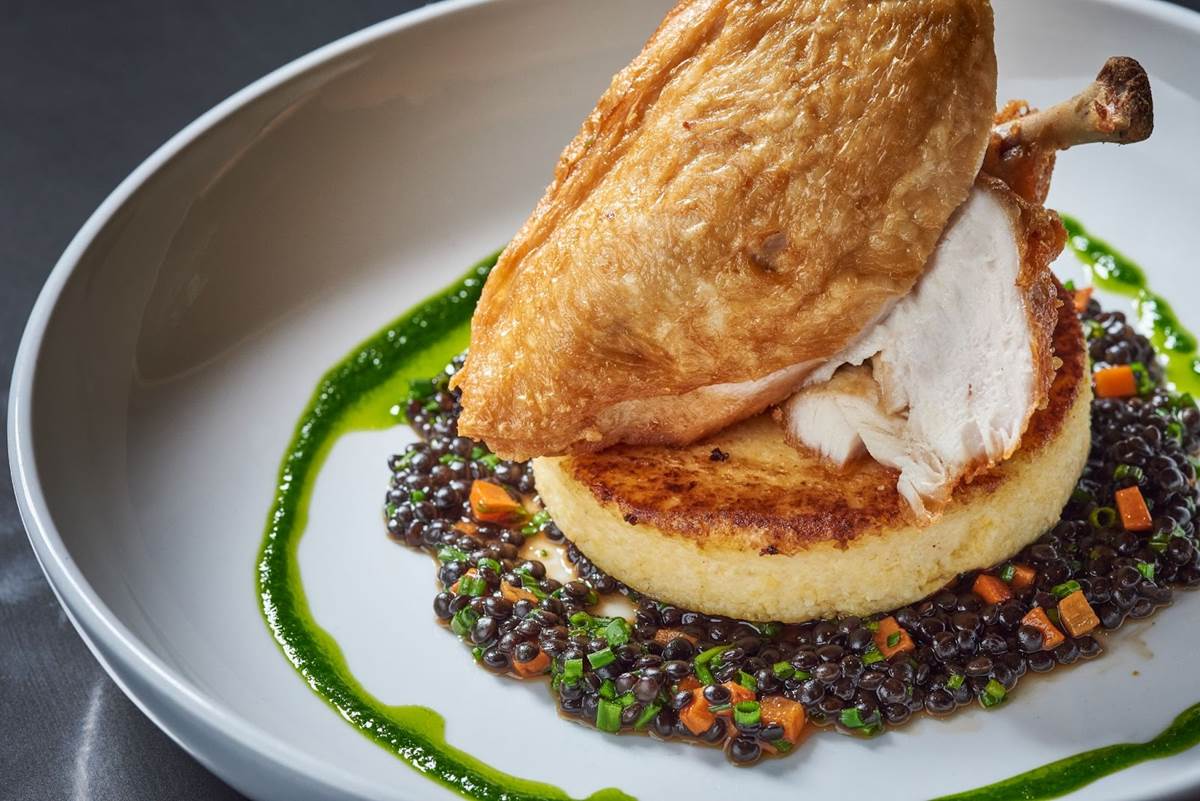 - Supreme Chicken Breast - Seared Chicken Breast, Polenta Parmesan Cake, Petite Balsamic Lentils and Basil Oil. Available as a Star Course (Entrée) option for lunch and dinner.