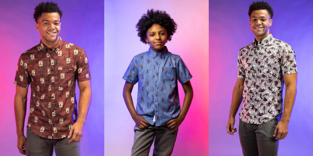 - The new collection includes unisex, short sleeve, button down shirts available in five fun patterns that highlight a few iterations of the webslinger (hi Miles!) and fan-favorite villain, Venom.