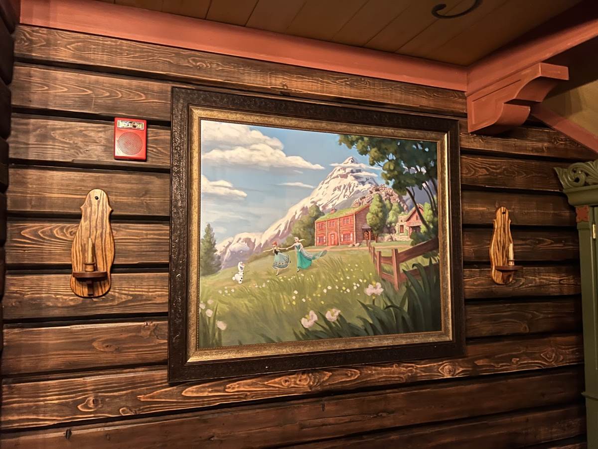 The interior of the Royal Sommerhus features some wonderfully intricate details, such as the totems of young Anna and Elsa.