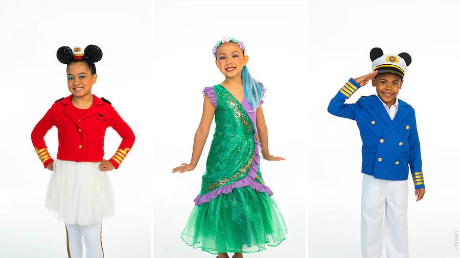 - Of course, an outfit is not complete without accessories! A nautical headband or captain’s hat will complete the new Minnie and Mickey makeovers, while little Ariels can sparkle head to toe with the matching necklace and tiara.