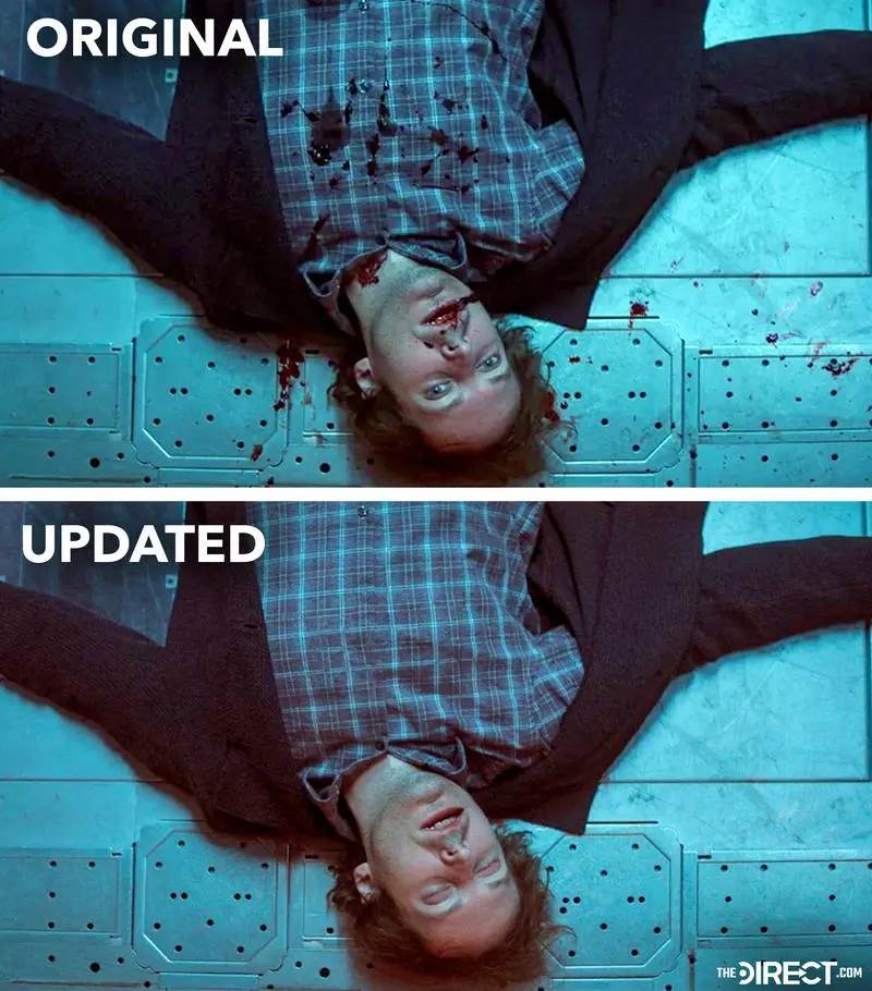 - There used to be blood on Nagel's face and shirt. It is edited now and there is nothing. They also changed from Nagel’s eyes remaining open, confirming that he had died, to now being closed.