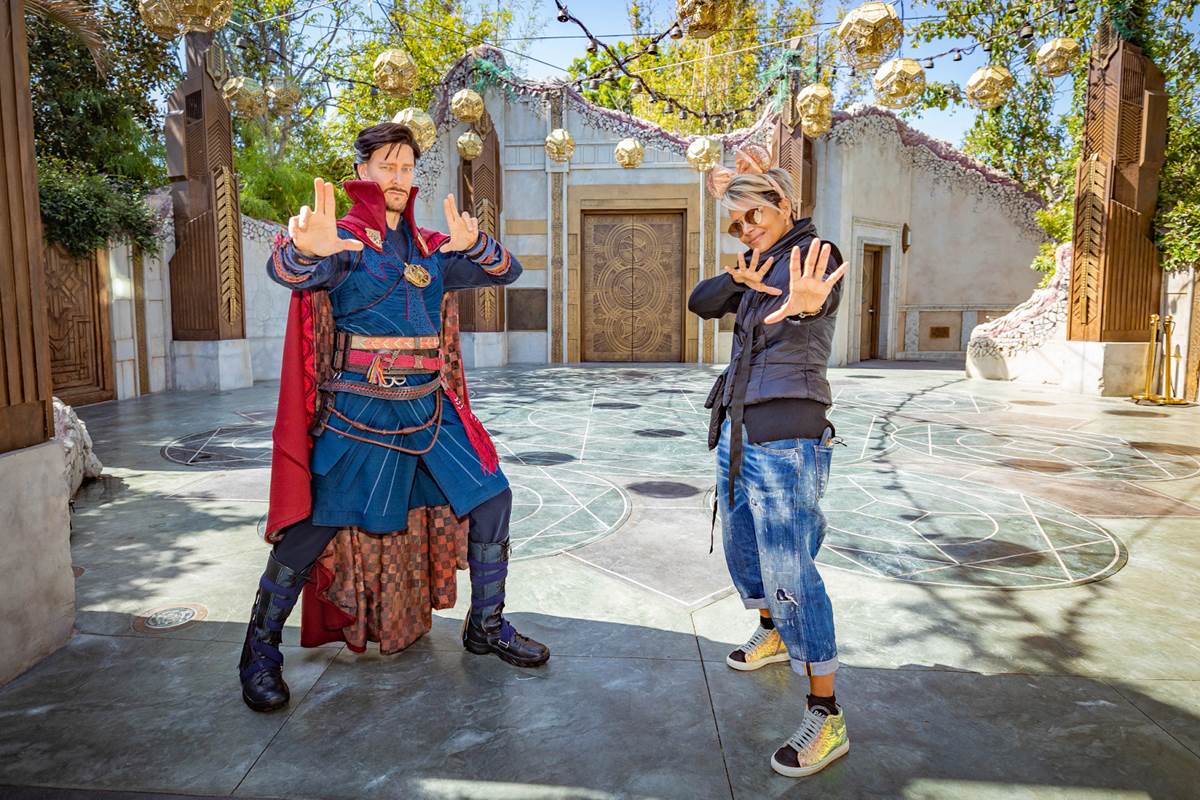 - The post is quoted as: "Actress @HalleBerry learns the mystic arts from Doctor Strange in Avengers Campus while vacationing at Disney California Adventure Park! #Disneyland"