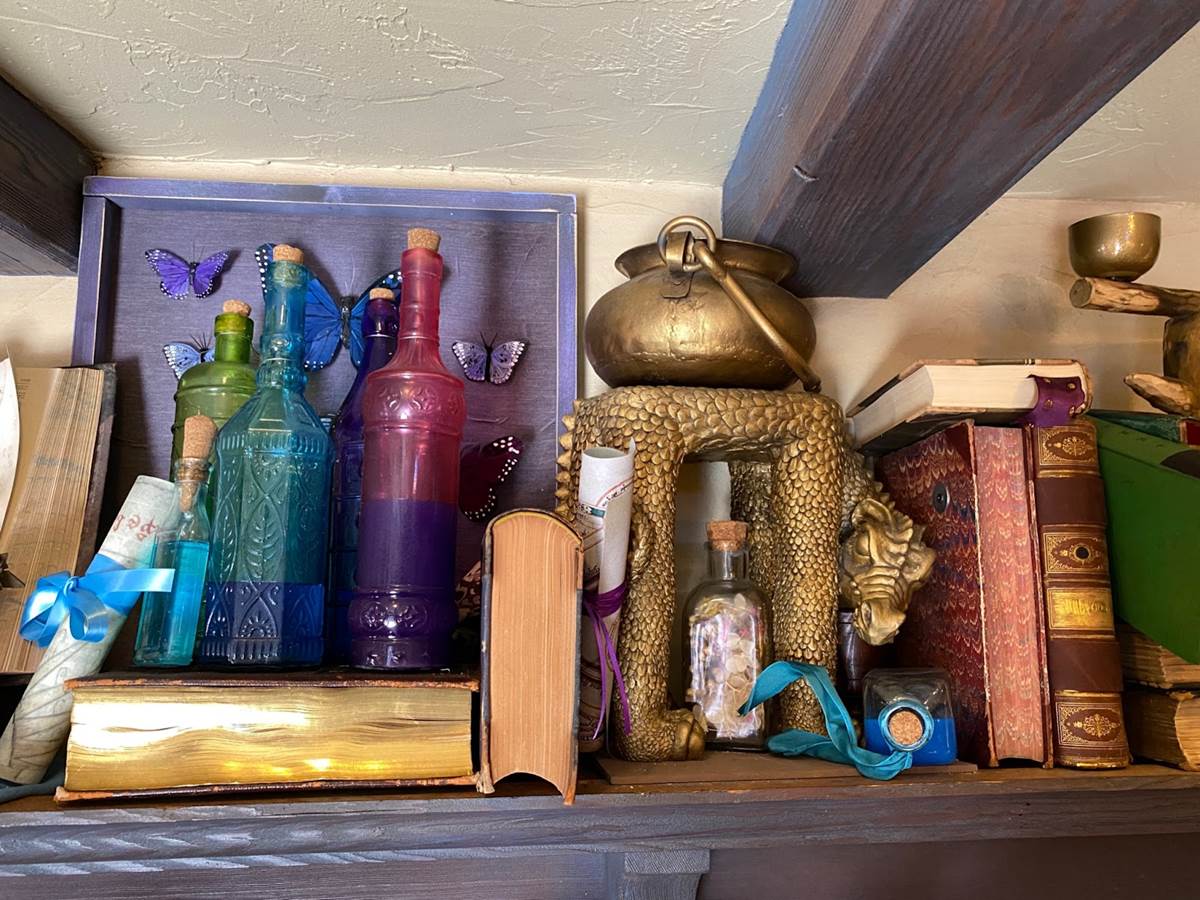 The shop is filled to the brim with artifacts and potions, and really anything you’d find lying around Merlin’s house.