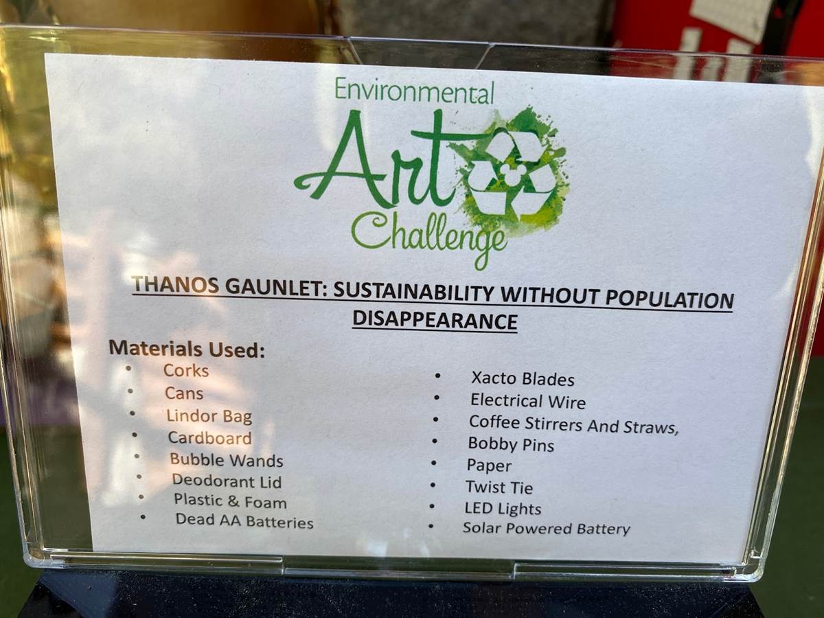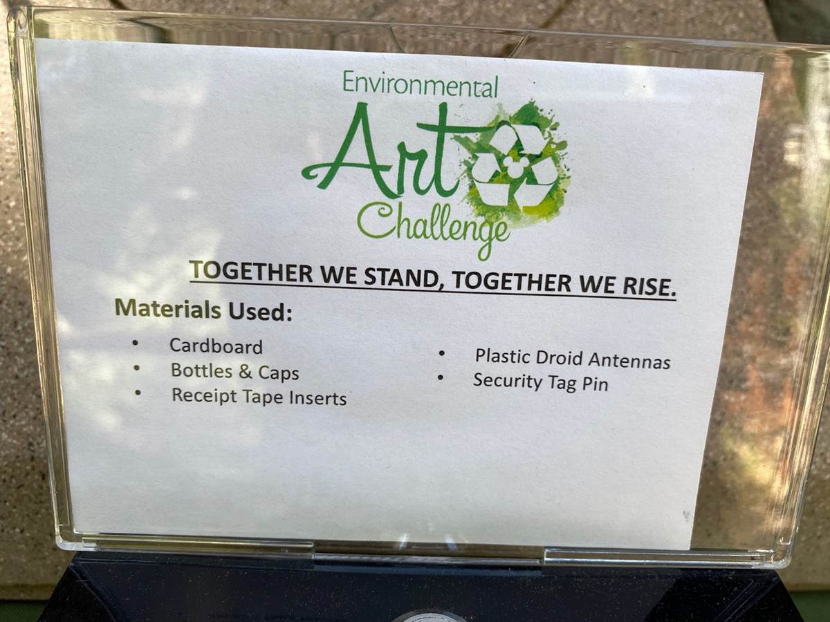 Underneath each picture of the various art pieces is a separate photo that explains what materials were used in the piece’s creation.