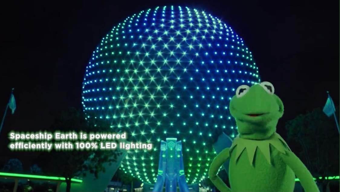 - Spaceship Earth is also powered efficiently with 100% LED lighting.