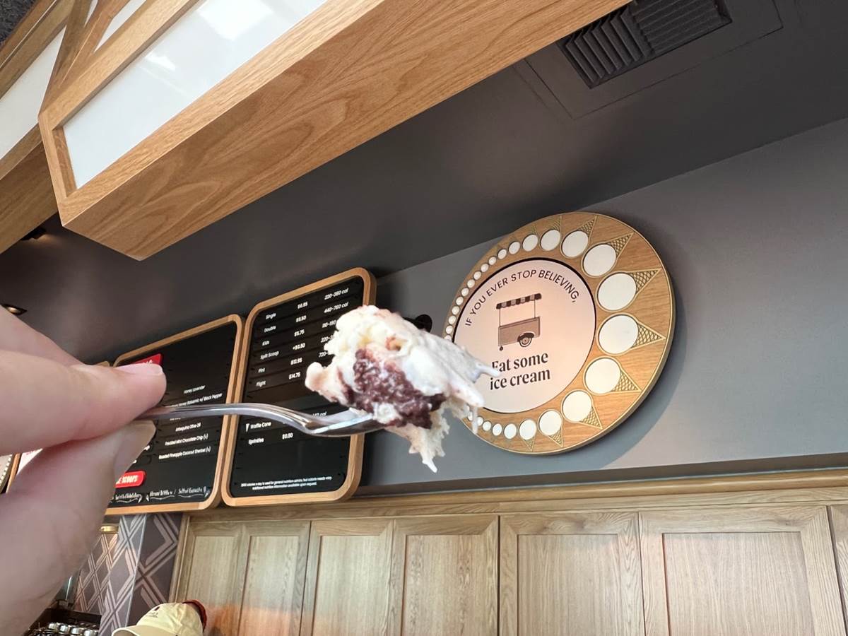 In addition to selling ice cream, you can also buy some specialty merchandise items inside, such as this ice cream cookbook.