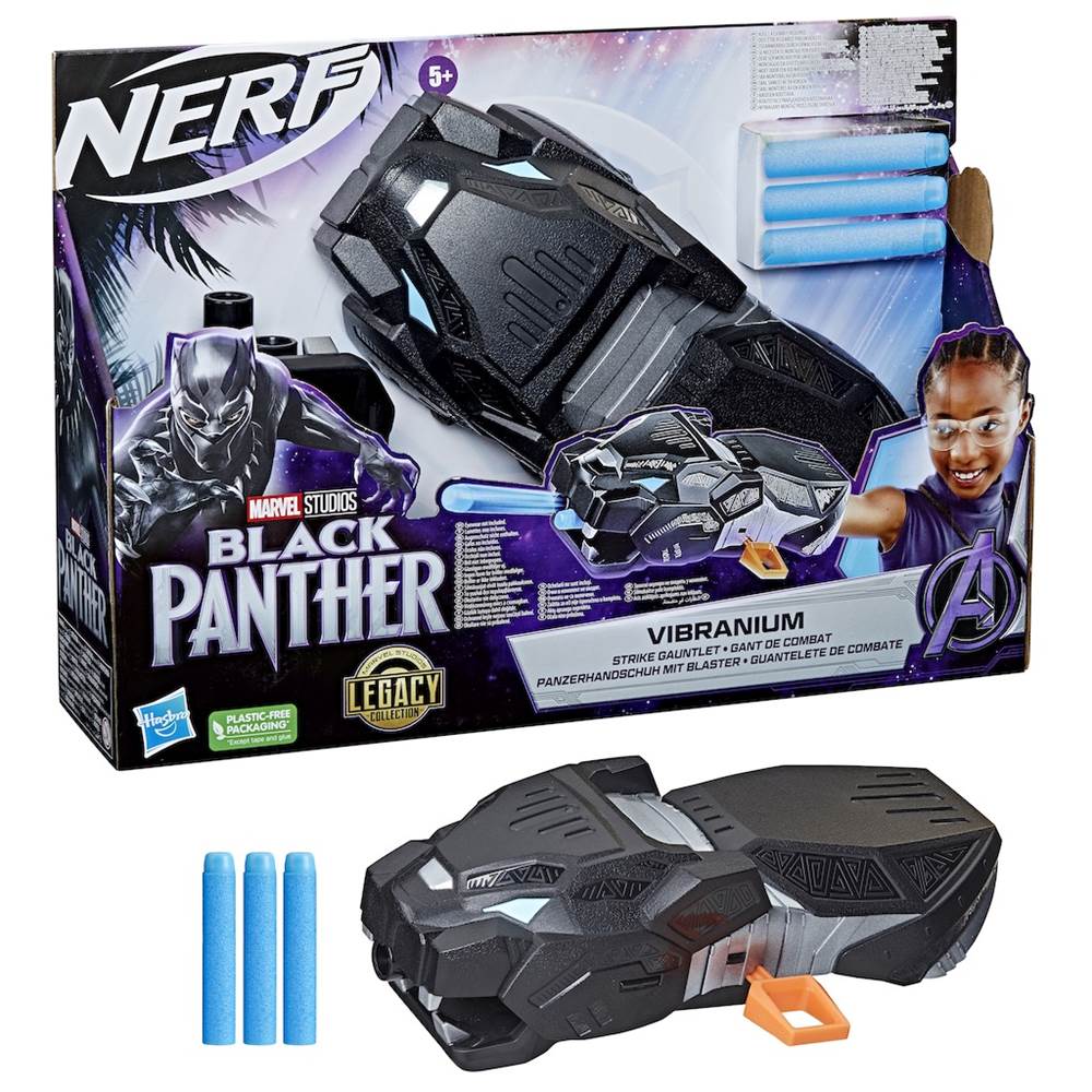 Kids can imagine blasting into action like their favorite heroes from Black Panther with the Vibranium Strike Gauntlet, featuring Nerf-powered, projectile-firing action! Gauntlet is designed to look like the head of a panther and includes 3 Nerf Elite darts so kids can load the projectiles and get ready to blast!
