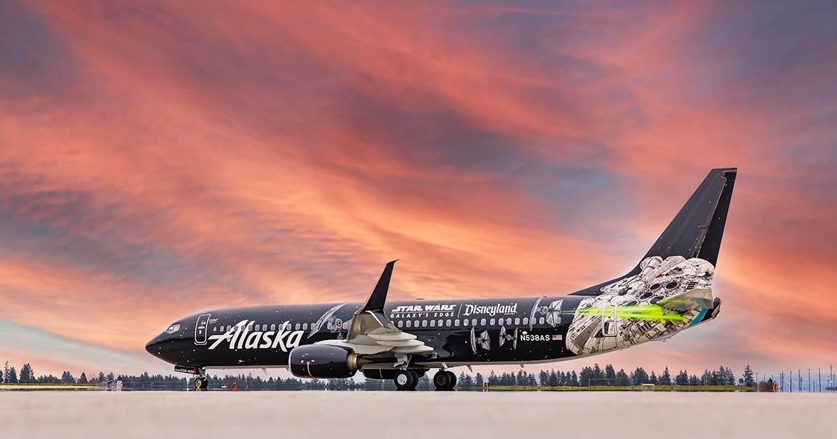 - Continuing their Star Wars Day celebration, Alaska Airlines also shared a look at their new Star Wars: Galaxy’s Edge-themed aircraft.
