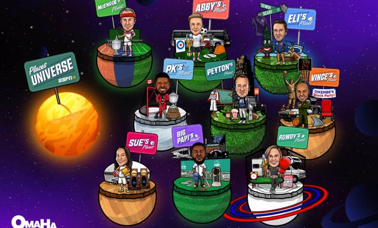 - The Places Universe is produced by NFL Films in collaboration with ESPN+. The series is executive produced by Omaha Productions, along with the other shows in the Places Universe: Peyton’s Places (football), Eli’s Places (college football), Abby’s Places (soccer), Rowdy’s Places (competitive fighting), Big Papi’s Places (baseball), and Vince’s Places (basketball).
