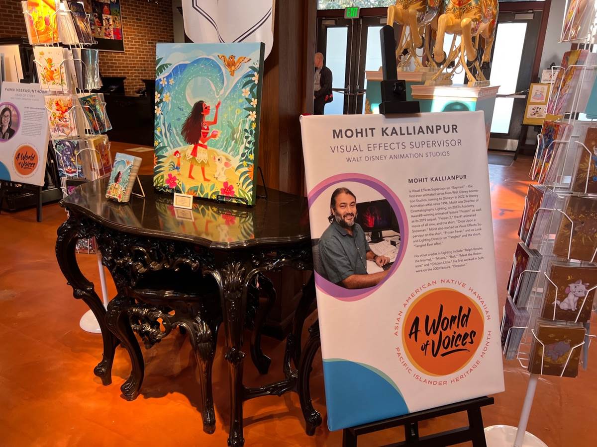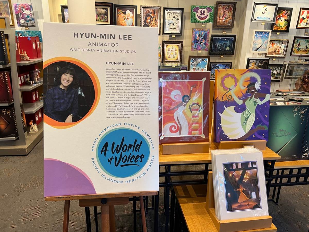 The Art of Disney store in the Marketplace features multiple tributes to Asian American Disney animators alongside artwork inspired by characters they worked on.