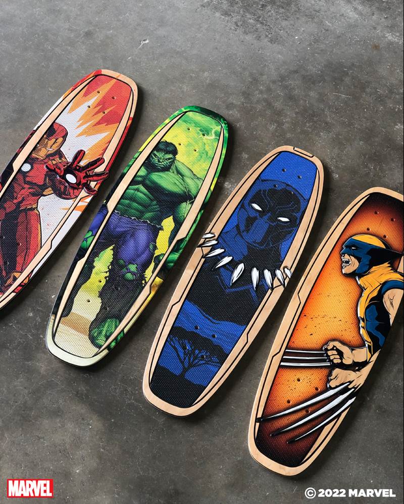 - The eye-catching collection includes four board designs inspired by esteemed Marvel characters including Wolverine, Black Panther, Hulk, and Iron Man.