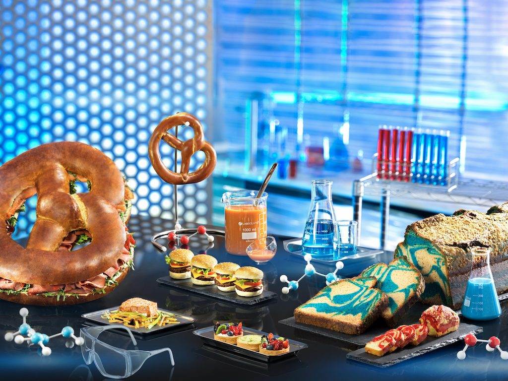 - The art of the table will use the codes of a LAB, with olive oil presented in test tubes, soups in beakers and wine served in Erlenmeyer flasks.