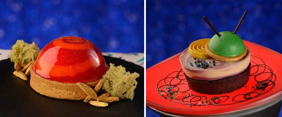 - The grand finale of the meal, dessert, is also getting a revamp. The Red Planet is a delicious white chocolate cheesecake with blueberry compote on a graham cracker tart with a matcha sponge and gold candied pecans. How yummy does that sound? For a more tropical option, you have the Out-of-this-World Sci-Fi Swirl. This dish features a pineapple mousse with passion fruit cosmic swirl and a spiced lime spaceship garnished with space dust and blood orange coulis.
