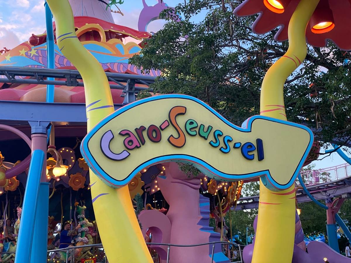- The Caro-Seuss-el is located in the center of the park’s Seuss Landing area.