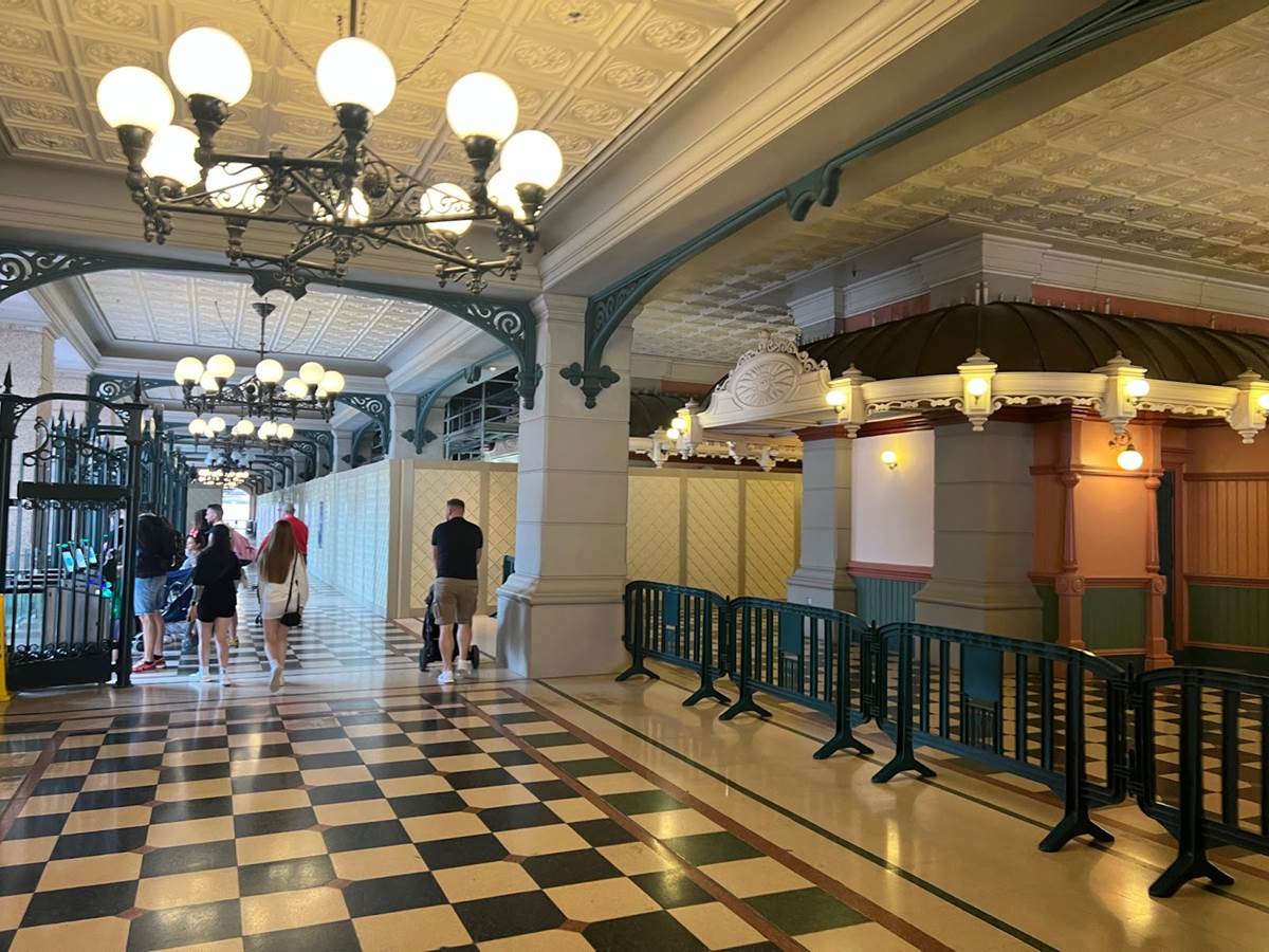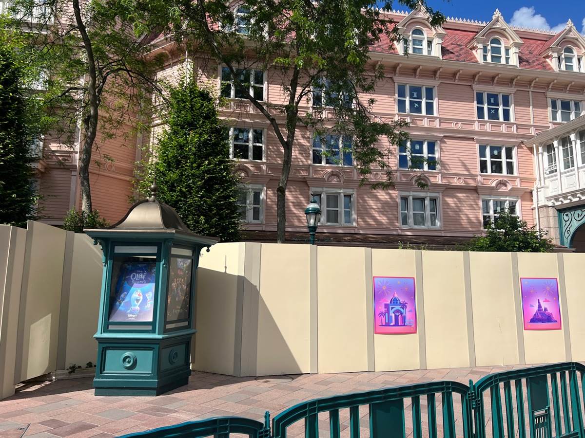 There are also walls up underneath the hotel, which doubles as the entrance and ticket sales area for Disneyland Paris.
