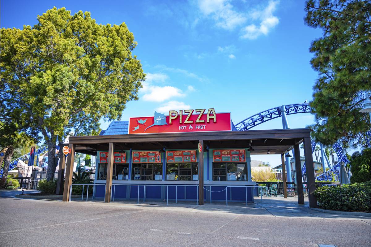 - Manta Pizza opens as a delicious destination to stop and refuel between rides and exhibits. Located at the heart of SeaWorld San Diego, the chefs at Manta Pizza craft delicious pizza pies with options such as traditional cheese, pepperoni, and vegetarian. The rich taste and fresh ingredients provide guests with the perfect pit-stop for a quick and delicious lunch break.