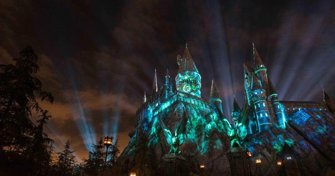 - Beginning today, The Nighttime Lights at Hogwarts Castle returns with a dazzling light and special effects projection display set against the backdrop of Hogwarts School of Witchcraft and Wizardry. As night falls on Hogsmeade village, guests can enjoy an awe-inspiring spectacle that showcases the four houses of Hogwarts: Gryffindor, Ravenclaw, Hufflepuff and Slytherin, accompanied by a special musical arrangement based on original scores from the film series.