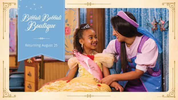 - The Bibbidi Bobbidi Boutiques at Disneyland Park and Magic Kingdom will reopen August 25 with reservations becoming available in early August.