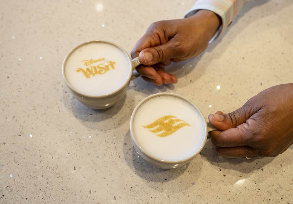 “A Disney Cruise Line guest favorite, Cove Café is a chic poolside lounge aboard the Disney Wish, offering gourmet coffees, teas, specialty drinks and treats throughout the day. The sophisticated yet casual spot reflects the Oceania-inspired artistry of Disney Animation Studios’ Moana."