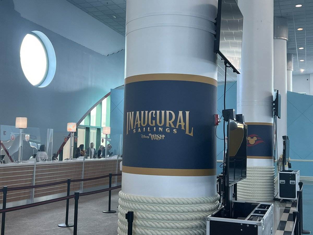 - The Port Canaveral terminal is decked out with decor for the inaugural sailings of the Disney Wish.