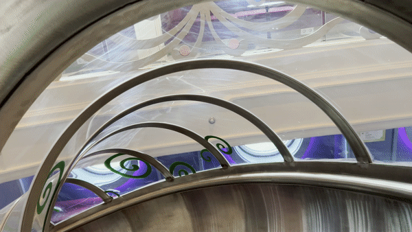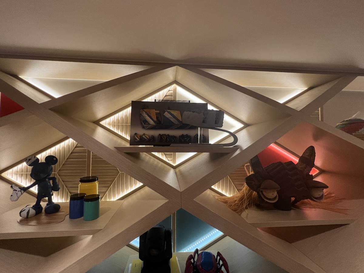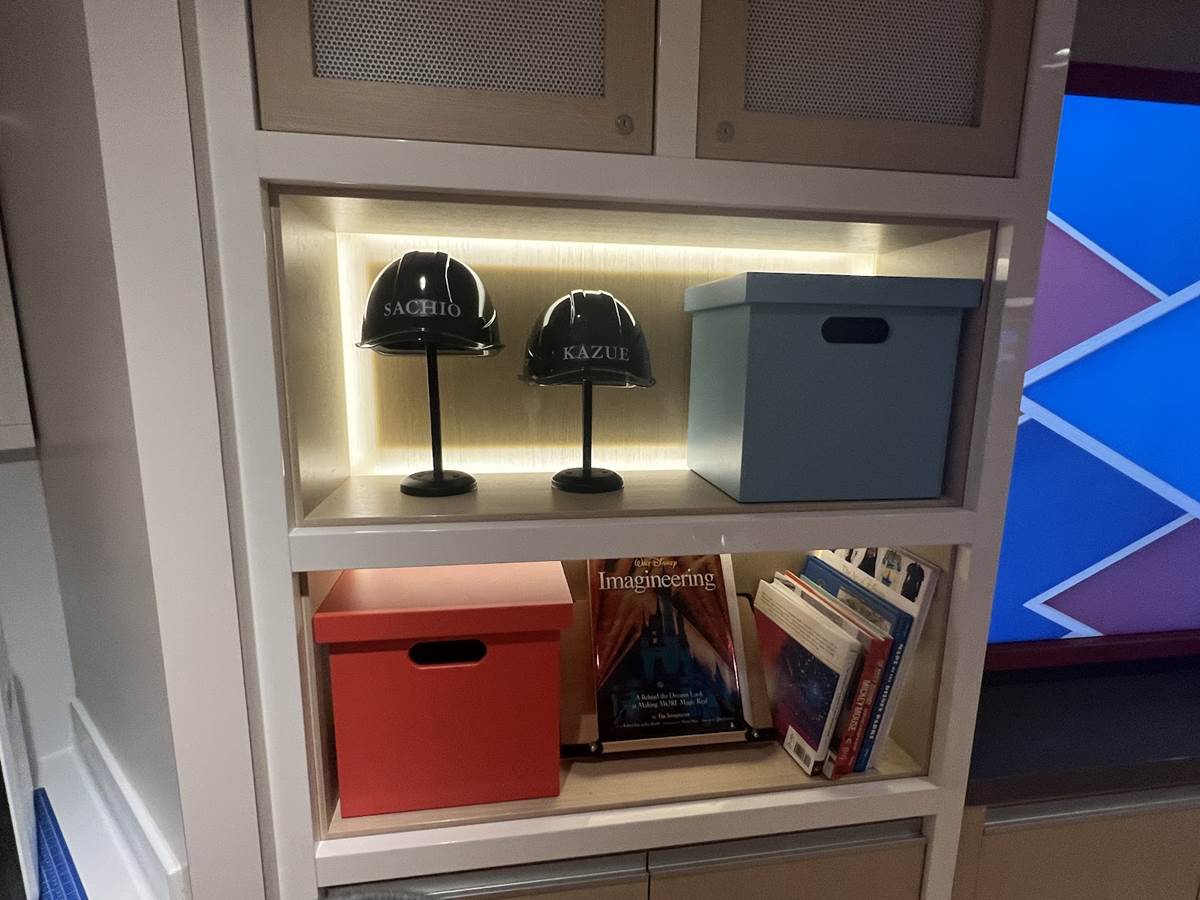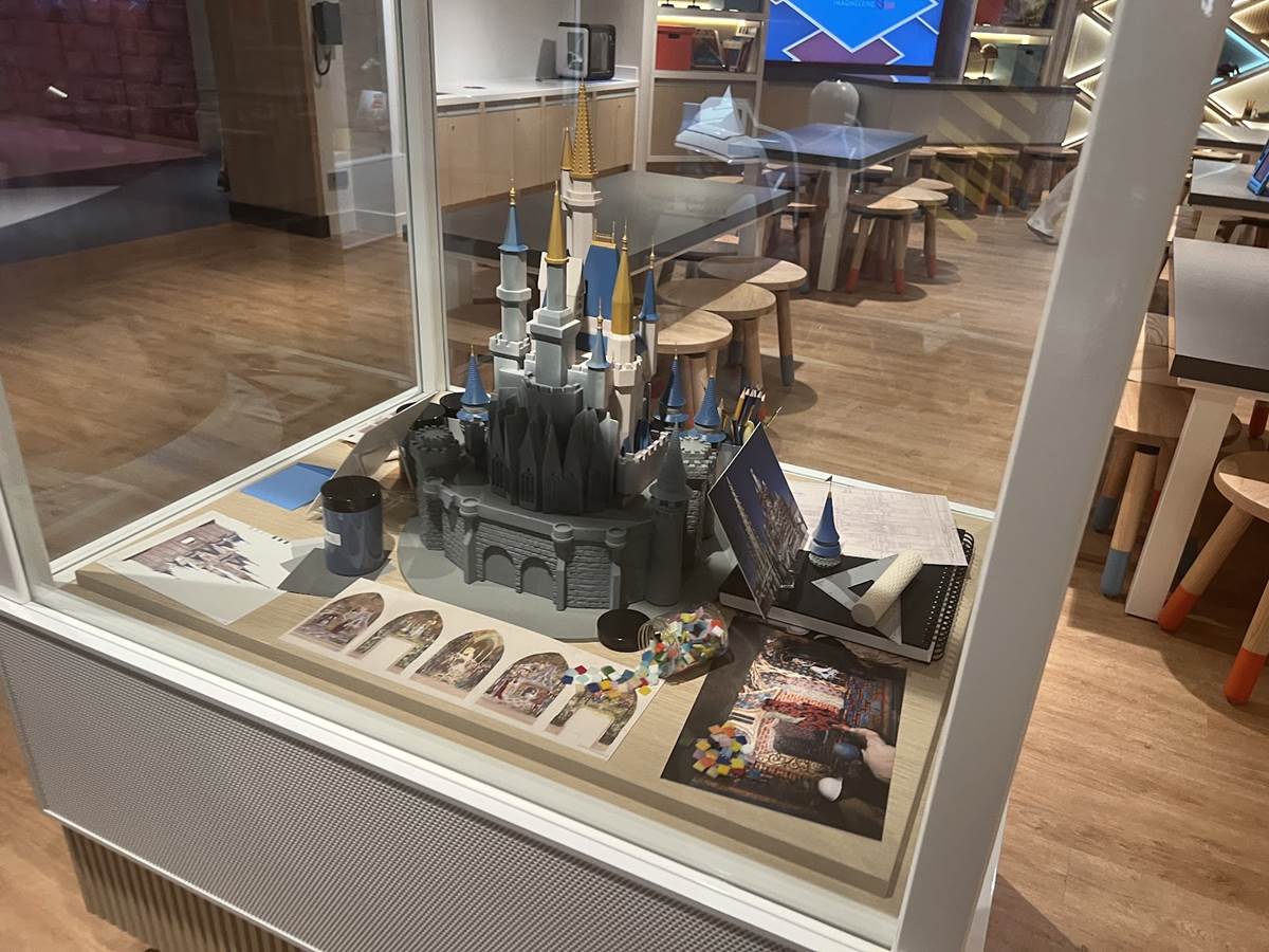 In the play room, magical murals will feature interactive hand cranks that trigger delightful effects. Little ones will be able to spark a cascade of ice magic from Elsa’s hand, send Aladdin and Jasmine swaying on the magic carpet, uncover Flynn Rider as he clings to Rapunzel’s enchanted tresses, and more. A toy train will chug along the ceiling, filling the space with colorful lights, playful sounds and kinetic energy.