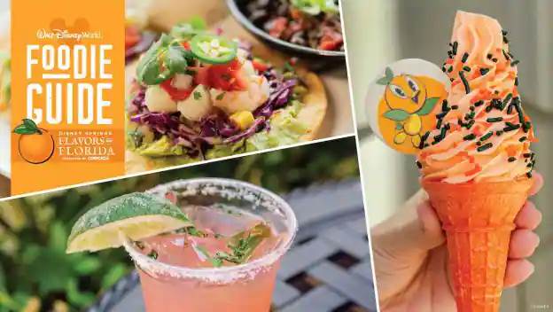 Collage of dishes and beverages at Disney Springs inspired by Florida