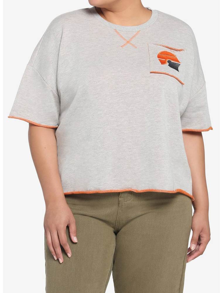 Much like Fennec, this boxy top has a lot going for it! The athletic style features heather grey coloring with orange stitching along the hem and sleeves. A small pocket on the front depicts the Bounty Hunter’s profile while her name is spelled out across the back shoulders. Finally, the oversized cut gives fans lots of room to move around for whatever activities the day holds.