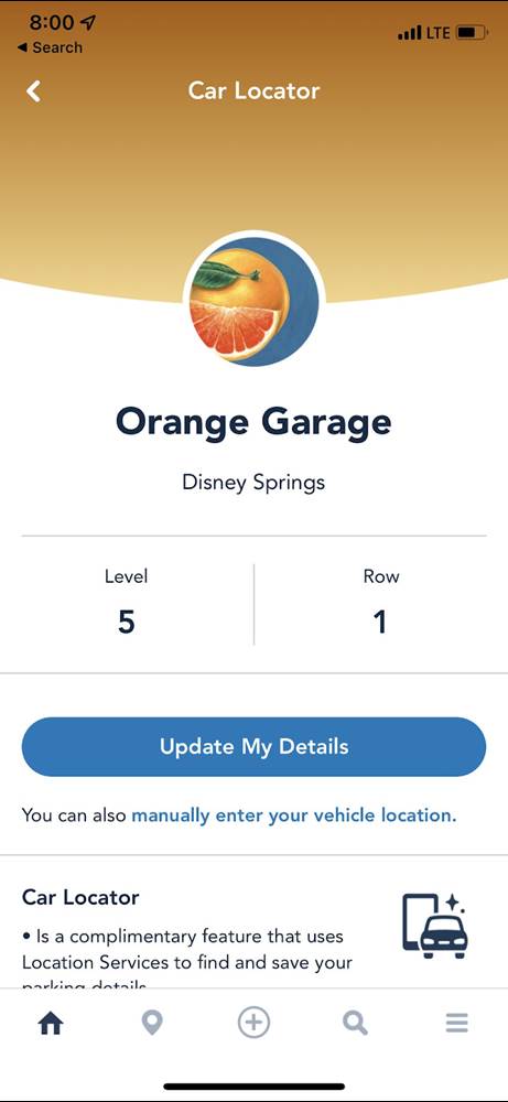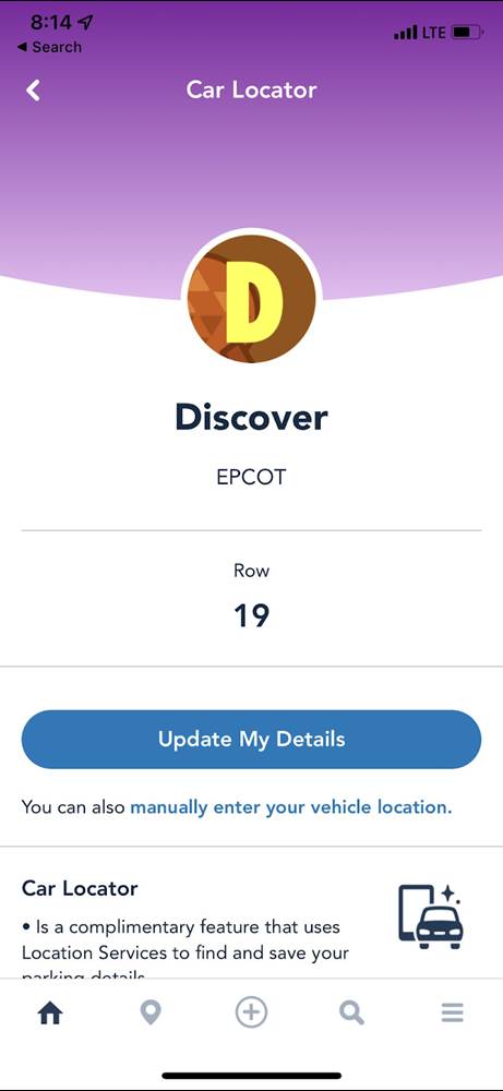 - Guests can access this feature on the My Disney Experience app on the home screen or in the feature menu for access. You will then arrive at the car locator feature on the screen, which should be on the right.