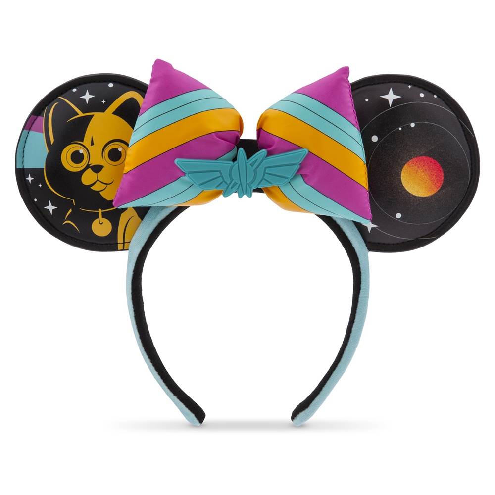 Plus, blast off to infinity and beyond wearing this ear headband themed to Disney and Pixar's Lightyear. Printed ears with Sox, and a striped satin bow, are complemented by a Star Command badge and glow-in-the-dark elements.
