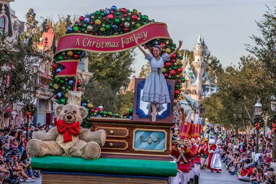 - Anna, Elsa, and Olaf from Walt Disney Animation Studios’ Frozen, along with Mickey Mouse, Minnie Mouse, Santa, and many other friends, will celebrate the season in A Christmas Fantasy Parade. There will be music, floats, marching toy soldiers, dancing gingerbread cookies and more.