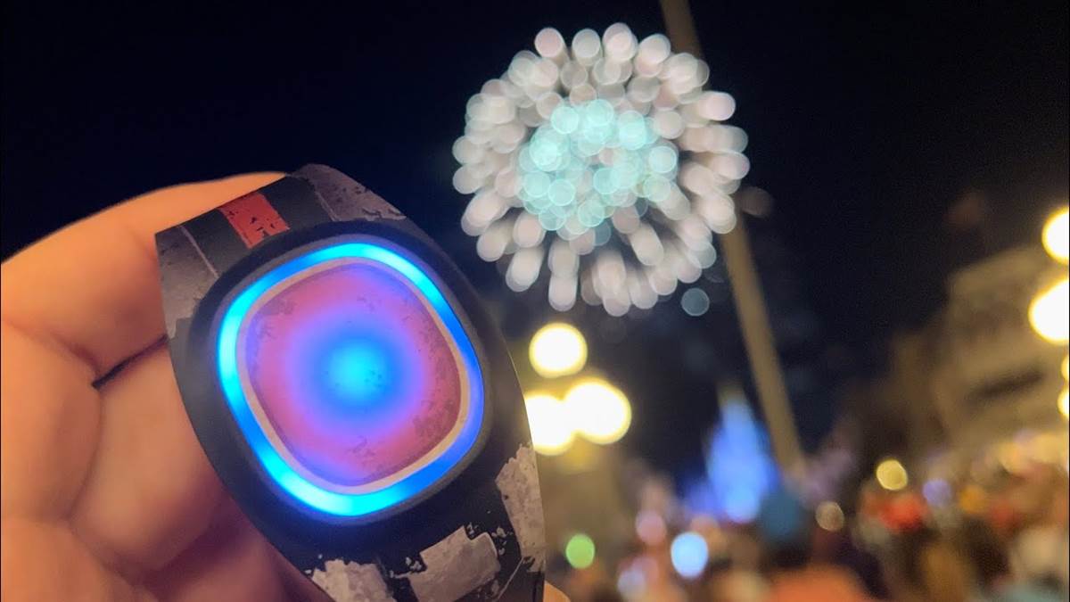 One of the more interesting elements of the newly released MagicBand+ wearable devices is how the lights on the band sync up to various nighttime entertainment at the Walt Disney World Resort. In our new video below, see how the new MagicBand+ interacts with the finale of the Disney Enchantment fireworks at the Magic Kingdom.