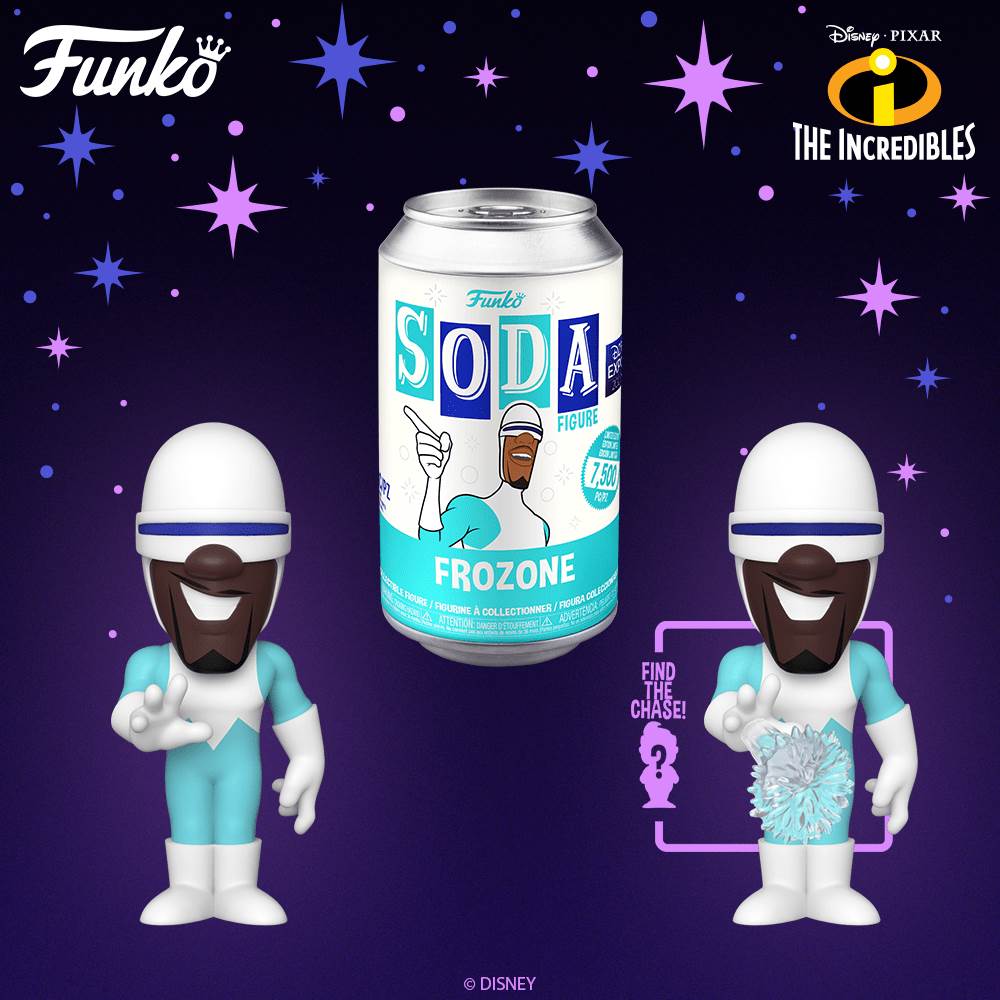 If there’s only one thing for us to say about Frozone, it’s that he is a cool guy! This fancy Soda collectible showcases the popular Super in his hero costume ready to save Metroville…and the chase variant features him creating a blast of ice!