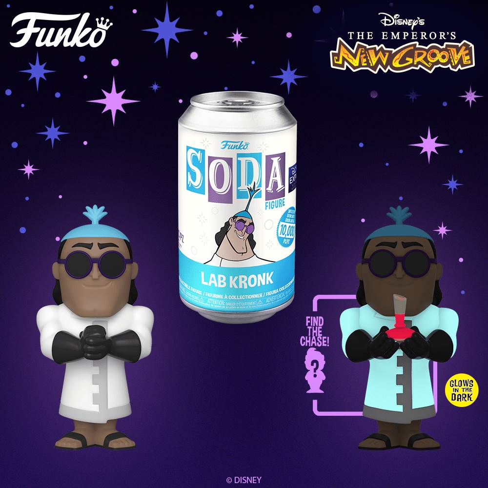 While we’re still on the topic of The Emperor’s New Groove, Funko delivers another fun Soda style of the buff body guard dressed in a lab coat and protective gear. The chase variant glows in the dark and includes the deadly potion!