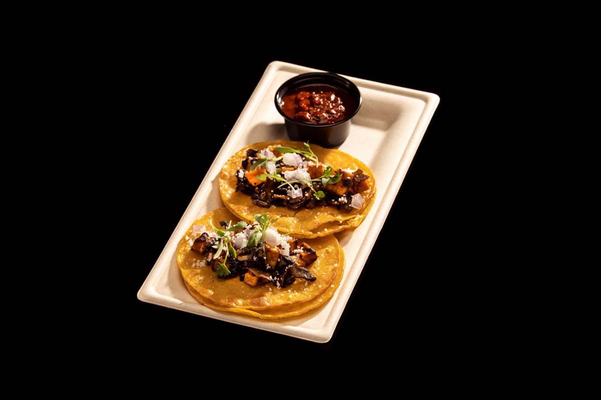 - Día de los Muertos themed items: Includes offerings inspired by Latin flavors such as Tamales Día de los Muertos (gluten-free) – pork tamales topped with red mole sauce and cotija cheese; and Roasted Sweet Potato & Mushroom Street Tacos (vegan and gluten-free) – roasted sweet potato and mushroom tacos topped with onions, vegan crumbled cheese and cilantro; also served with birria consommé